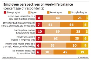 The survey also showed that 69 per cent of the respondents said they tended to deal with private matters during work hours, while 68 per cent indicated they handled work-related matters in their private time.